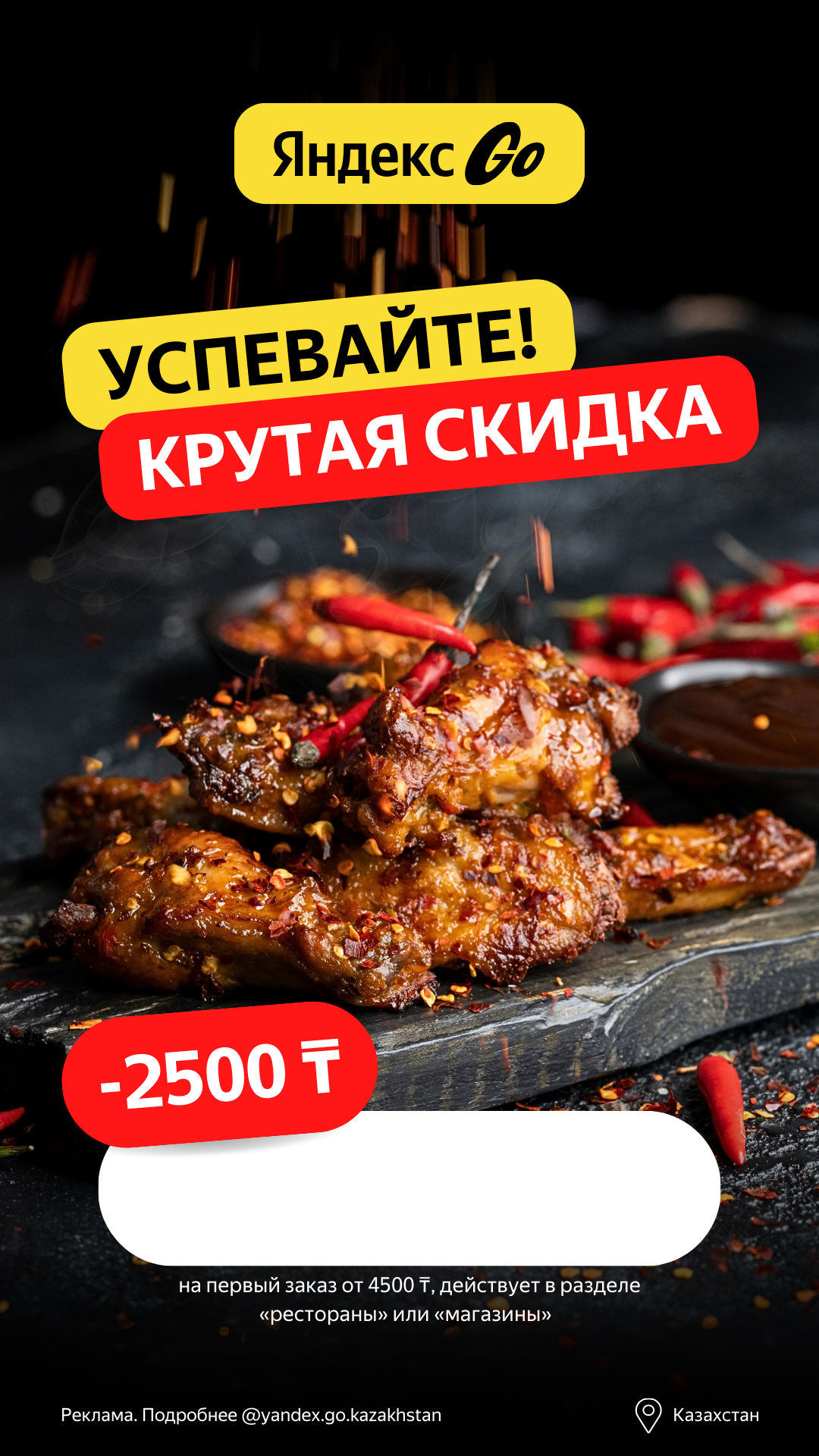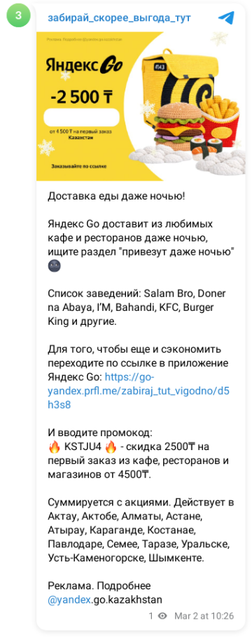 Реклама. Подробнее @yandex.go.kazakhstan - Эта доставка точно тебе нужна!Забудь о кастрюлях и сковородках - Яндекс Go откроет для тебя мир вкусных блюд, доставленных прямо к двери.